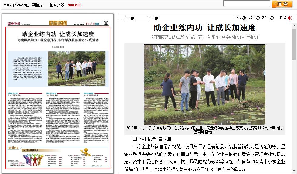 在海南股權(quán)交易中心成立三周年之際,證券導(dǎo)報(bào)以四個(gè)版面整版報(bào)道海南股權(quán)交易中心,關(guān)注股交中心三年以來的發(fā)展。其中,通過一個(gè)版面的報(bào)道——《創(chuàng)新金融產(chǎn)品帶來真金白銀》,解讀了股交中心幫助企業(yè)實(shí)現(xiàn)融資的各項(xiàng)...