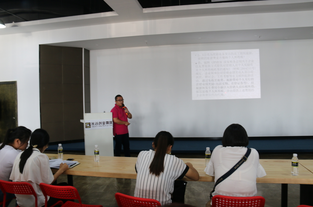 9月27日,海南股權(quán)交易中心聯(lián)合??诠夤葎?chuàng)業(yè)咖啡、海南恩澤網(wǎng)絡(luò)科技有限公司(會(huì)計(jì)當(dāng)家)在??谑袕?fù)興城光谷創(chuàng)業(yè)咖啡共同舉辦第16期企業(yè)培訓(xùn)。此次活動(dòng)主題為“小微企業(yè)稅收優(yōu)惠政策解讀以及企業(yè)涉稅答疑、財(cái)務(wù)電算化管理”,由海南弘遠(yuǎn)泰斯稅務(wù)師事務(wù)所專(zhuān)家做培訓(xùn),30余家企業(yè)代表參加了本次活動(dòng)。