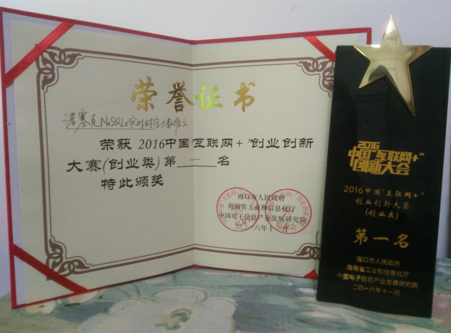 此次大賽由??谑姓?、海南省工信廳及中國電子信息產(chǎn)業(yè)發(fā)展研究院聯(lián)合主辦,美蘭區(qū)政府、??诮y(tǒng)籌城鄉(xiāng)發(fā)展集團(tuán)、賽迪網(wǎng)共同承辦。大賽在全國設(shè)立七個(gè)大賽區(qū),召集了上千個(gè)項(xiàng)目參賽,涉及“互聯(lián)網(wǎng)+”、大數(shù)據(jù)、云計(jì)算、旅游、O2O等眾多創(chuàng)業(yè)創(chuàng)新項(xiàng)目。大賽歷經(jīng)3個(gè)月,一共有35個(gè)優(yōu)秀項(xiàng)目參加總決賽,經(jīng)過激烈的角逐,諾塞克NoSQLt實(shí)時(shí)時(shí)空大數(shù)據(jù)云獲得創(chuàng)業(yè)組第一名。
