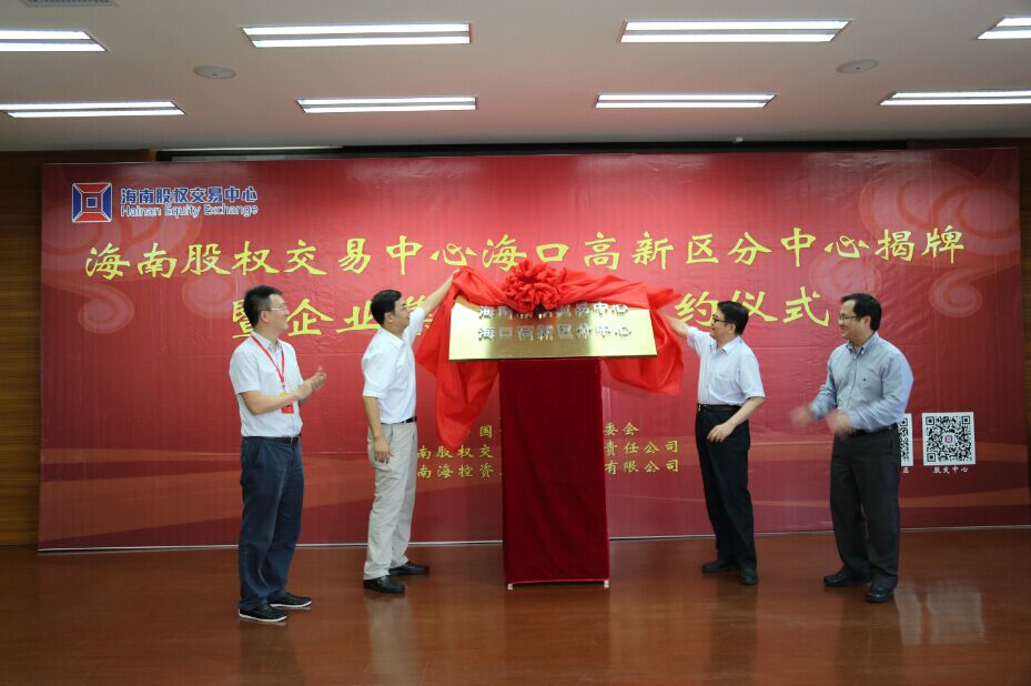 11月10日上午,海南股權交易中心??诟咝聟^(qū)分中心揭牌暨企業(yè)集體掛牌儀式,在??趪腋咝录夹g產業(yè)開發(fā)區(qū)管委會二樓舉行?;顒佑珊?趪腋咝聟^(qū)管委會、海南股權交易中心和海南海控資本創(chuàng)業(yè)投資有限公司三方共同主辦。省科技廳黨組書記葉振興,省金融辦主任鄧傳明,省工信廳副巡視員符傳智,??谑薪鹑谵k和市科工信局相關領導,以及三家主辦單位的負責人及16家企業(yè)代表參加了本次儀式。