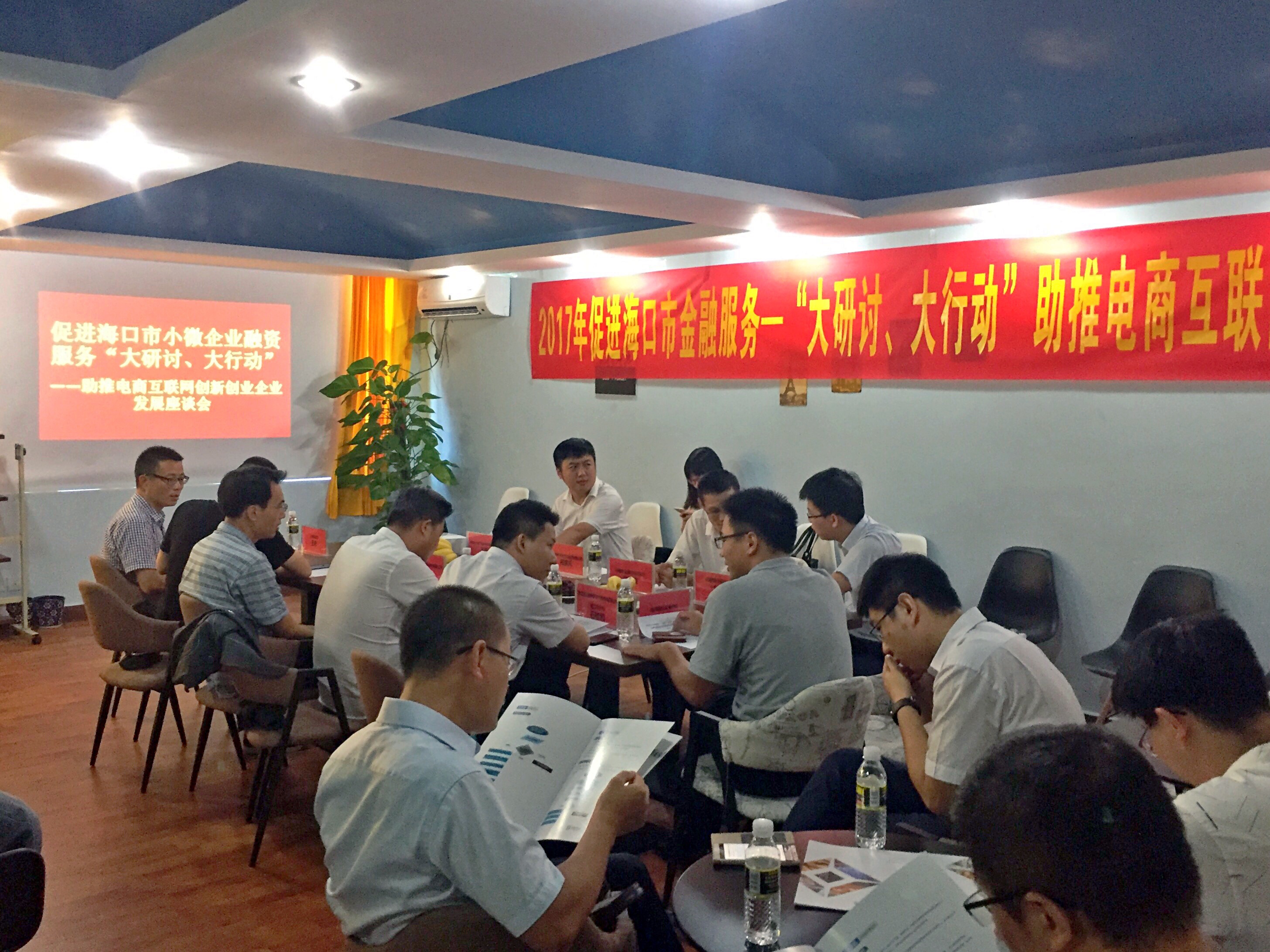 本次2017年促進(jìn)??谑薪鹑诜?wù)—“大研討、大行動(dòng)”助推電商互聯(lián)網(wǎng)創(chuàng)新創(chuàng)業(yè)企業(yè)發(fā)展座談會(huì)活動(dòng),由??谑猩虅?wù)局及??谑锌乒ば啪致?lián)合指導(dǎo),海口市中小企業(yè)公共服務(wù)平臺(tái)主辦,海南青創(chuàng)投資管理有限公司承辦,海南股權(quán)交易中心協(xié)辦?;顒?dòng)旨在深度挖掘電子商務(wù)、互聯(lián)網(wǎng)創(chuàng)新創(chuàng)業(yè)企業(yè)實(shí)際需求,推動(dòng)金融資源要素更多向電商互聯(lián)網(wǎng)企業(yè)配置,幫助互聯(lián)網(wǎng)創(chuàng)新創(chuàng)業(yè)企業(yè)克服融資困難,滿足企業(yè)金融需求,促進(jìn)中小微企業(yè)發(fā)展。