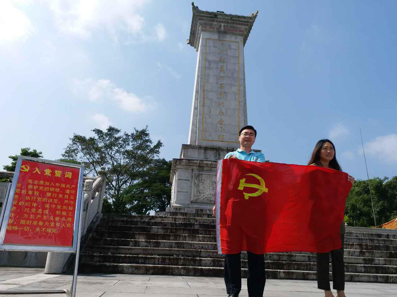 在參觀過程中,黨員們駐足觀看,回顧起義的光榮歷史,緬懷先烈們的豐功偉績。一件件先烈的遺物、一幅幅珍貴的照片、一篇篇詳實(shí)的史料,再現(xiàn)當(dāng)年白沙起義革命前輩們英勇奮戰(zhàn)的場景,彰顯出海南黎族苗族人民在艱苦的條件下對革命事業(yè)的無限忠誠和為革命鞠躬盡瘁、死而后己的崇高品質(zhì)。隨后,在莊嚴(yán)的革命先烈碑前,黨員們懷著無比崇敬的心情在烈士碑前重溫入黨誓詞。
