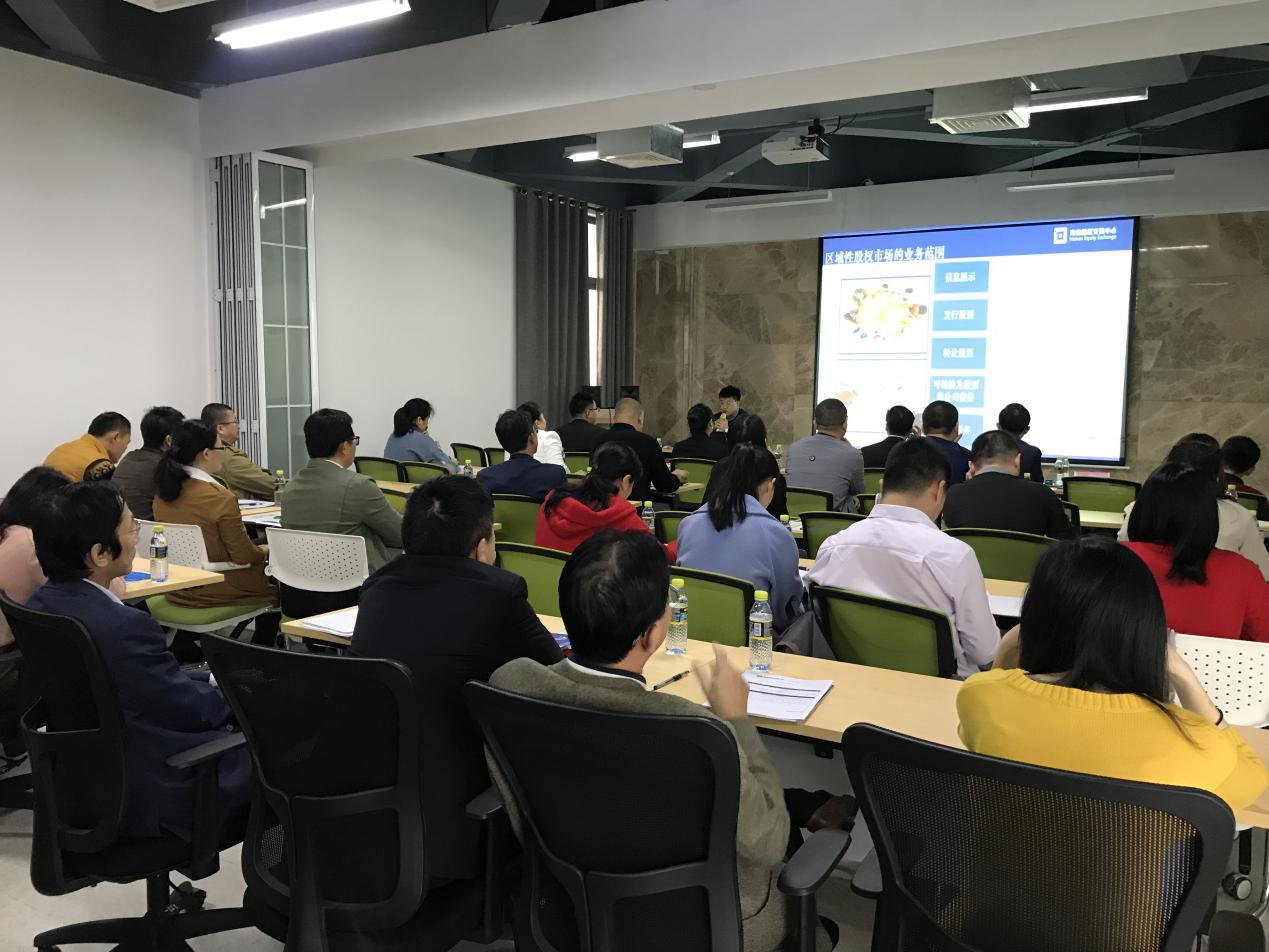 培訓(xùn)現(xiàn)場(chǎng),股交中心風(fēng)險(xiǎn)管理部負(fù)責(zé)人講解了企業(yè)自律管理、規(guī)范發(fā)展的要點(diǎn)和重要性。隨后,相關(guān)業(yè)務(wù)部門(mén)代表為在場(chǎng)的企業(yè)介紹股交中心的服務(wù)功能、政府相關(guān)支持政策、創(chuàng)新融資業(yè)務(wù)及股權(quán)轉(zhuǎn)讓業(yè)務(wù)等相關(guān)內(nèi)容,幫助掛牌企業(yè)熟悉區(qū)域性股權(quán)市場(chǎng)最新監(jiān)管環(huán)境及政策,充分地利用資本市場(chǎng),實(shí)現(xiàn)規(guī)范經(jīng)營(yíng),快速發(fā)展。