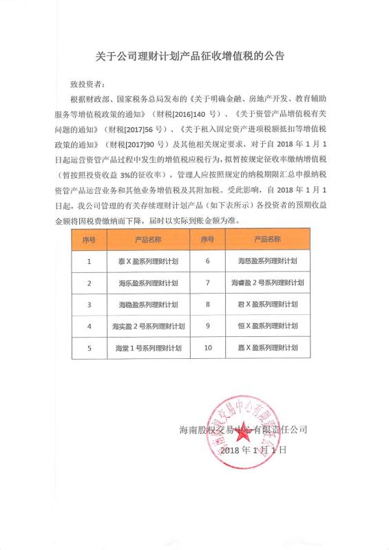 關(guān)于公司理財計劃產(chǎn)品征收增值稅的公告