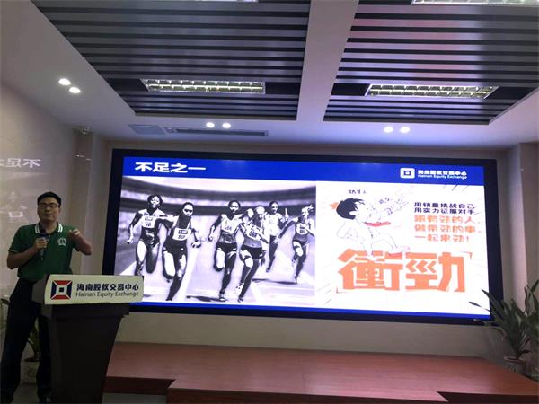 總經(jīng)理班淼琦現(xiàn)場對海南股交2019年工作計劃作了分析說明,明確指出海南股交2019年工作重心和各部門的核心指標,同時,要求全員掌握專業(yè)知識,建造學(xué)習(xí)型組織,而且要將專業(yè)培訓(xùn)作為一種常態(tài)一直開展下去。此外,各項工作要進一步提高流程化、標準化要求,努力將海南股交打造成專業(yè)、高效的扶持我省中小微企業(yè)發(fā)展的綜合服務(wù)平臺。