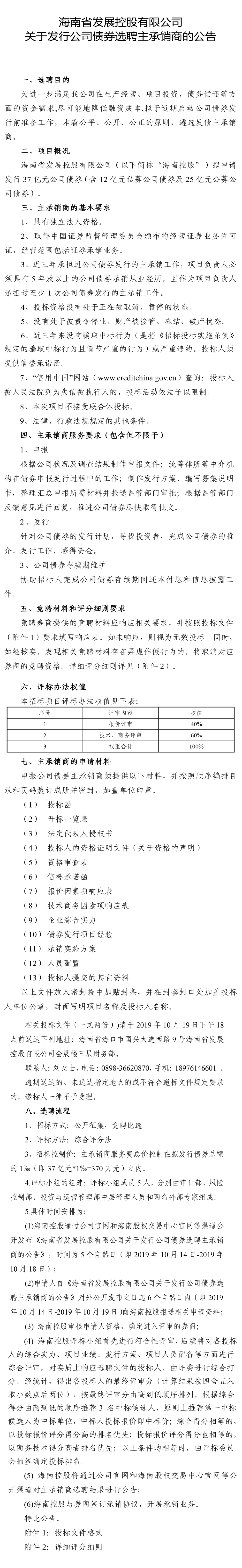 海南省發(fā)展控股有限公司關(guān)于發(fā)行公司債券選聘主承銷商的公告