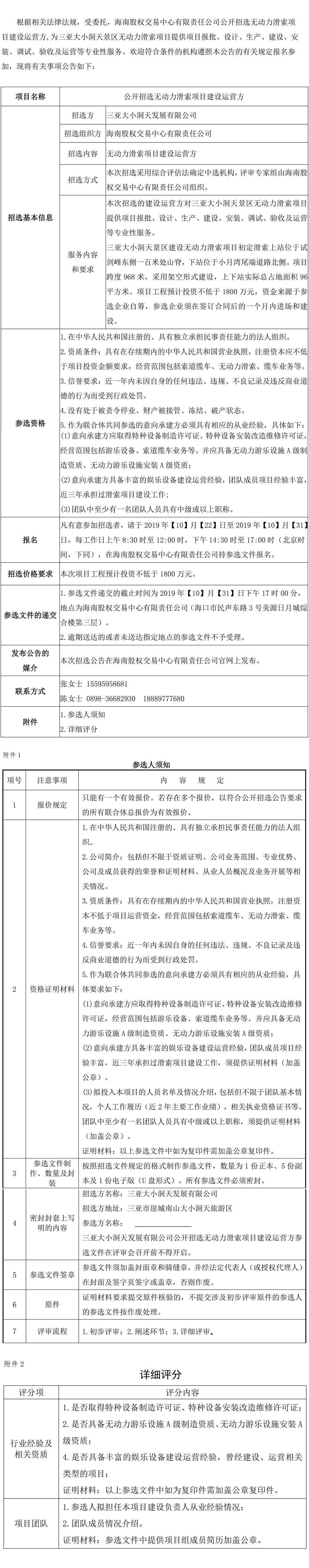 三亞大小洞天發(fā)展有限公司公開招選無動力滑索項目建設運營方