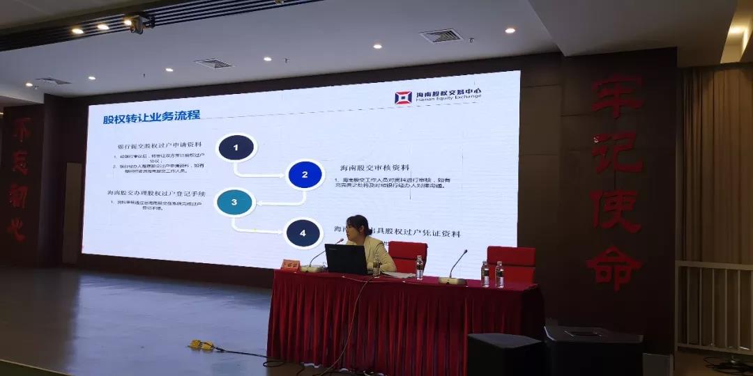 培訓(xùn)會(huì)上,海南股交總經(jīng)理助理卜麗麗向現(xiàn)場(chǎng)參會(huì)人員介紹了商業(yè)銀行股權(quán)登記托管的重要性和必要性。她表示,股權(quán)登記托管是區(qū)域性股權(quán)交易市場(chǎng)的一項(xiàng)基礎(chǔ)工作,也是主要業(yè)務(wù)之一。海南股交作為省內(nèi)唯一合法的區(qū)域性股權(quán)交易市場(chǎng)運(yùn)營(yíng)機(jī)構(gòu),成立至今,股權(quán)托管企業(yè)共計(jì)90家,托管總股本達(dá)67.05億股,積累了豐富的股權(quán)托管工作經(jīng)驗(yàn)。2018年,海南銀行股份有限公司在海南股交成功辦理股權(quán)登記托管手續(xù),成為省內(nèi)首家完成股權(quán)登記托管的法人銀行,標(biāo)志著海南省銀行股權(quán)登記托管業(yè)務(wù)實(shí)現(xiàn)零的突破。