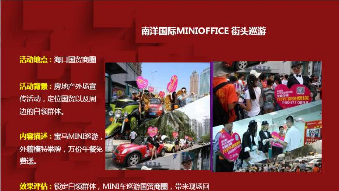| 企業(yè)說明: | 海南行走視界房地產(chǎn)營銷策劃有限公司成立于2014年,是一家集房地產(chǎn)企劃、銷售、活動推廣、市場研究于一體的專業(yè)化綜合性服務公司。公司以房地產(chǎn)營銷活動策劃和執(zhí)行為主營業(yè)務,同時兼顧房地產(chǎn)項目的市場調(diào)研、產(chǎn)品定位、銷售管理、銷售執(zhí)行、推廣策略、廣告創(chuàng)意設(shè)計、媒介服務、公關(guān)活動等單獨或分類結(jié)合的業(yè)務開展。 公司積極提升專業(yè)操作水平與項目服務能力,專業(yè)影響力不斷擴展,樹立了良好的品牌形象。目前公司服務區(qū)域以海口為中心,輻射海南其他市縣。 公司以誠信、速度、創(chuàng)新為理念,秉承專業(yè)市場操作路線,以縝密而完備的市場情況的掌握,提供最適合的策略方案,進行最有效的行銷推廣,熟悉房地產(chǎn)運作模式,能及時準確提供專業(yè)的指導意見和銷售建議。