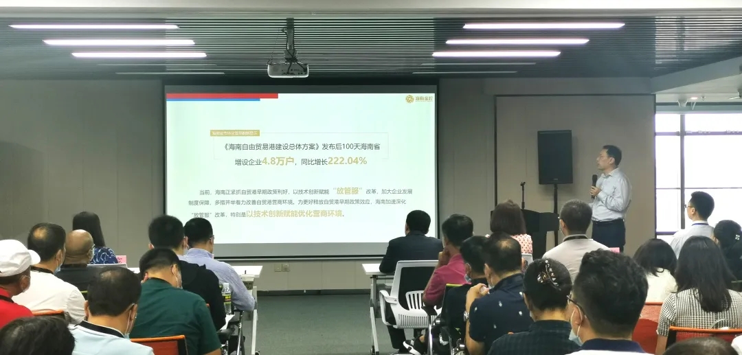隨后,程棟才向參會(huì)企業(yè)家代表介紹了海南股交的設(shè)立背景、服務(wù)定位、金融產(chǎn)品及海南自貿(mào)港相關(guān)稅收政策等內(nèi)容,分享了公司成立以來(lái)助力海南經(jīng)濟(jì)發(fā)展和在服務(wù)我省中小微企業(yè)方面的成就與案例。他表示,海南是一塊充滿希望和活力的創(chuàng)業(yè)興業(yè)熱土,干事創(chuàng)業(yè)氛圍濃厚,在海南自貿(mào)港建設(shè)發(fā)展的新形勢(shì)下,希望更多的省外企業(yè)把握商機(jī),不斷加深對(duì)海南的認(rèn)識(shí)了解,海南股交期待與各省市企業(yè)加強(qiáng)交流、主動(dòng)對(duì)接,為項(xiàng)目落地和企業(yè)后續(xù)發(fā)展提供優(yōu)質(zhì)高效服務(wù)。