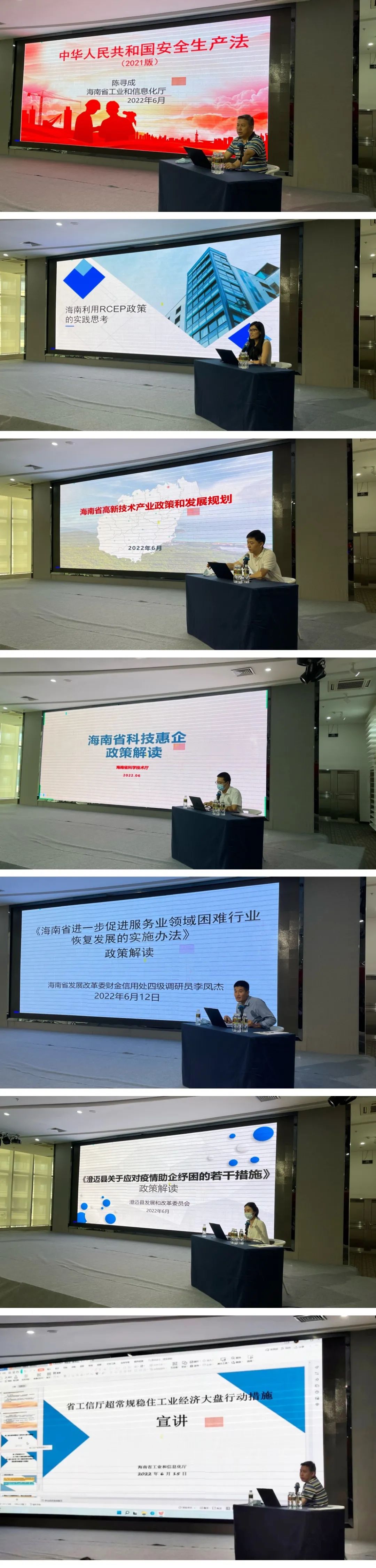 會(huì)上,海南省工業(yè)和信息化廳、海南省科學(xué)技術(shù)廳、海南省發(fā)展和改革委員會(huì)、澄邁縣發(fā)展和改革委員會(huì)等相關(guān)部門(mén)針對(duì)我省中小企業(yè)紓困扶持政策進(jìn)行宣貫,重點(diǎn)解讀了《保障中小企業(yè)款項(xiàng)支付條例》《安全生產(chǎn)法》《海南工信財(cái)政措施實(shí)施細(xì)則》《海南省工信廳超常規(guī)穩(wěn)住工業(yè)經(jīng)濟(jì)大盤(pán)行動(dòng)措施》《海南省高新技術(shù)產(chǎn)業(yè)政策和發(fā)展規(guī)劃》《海南利用RCEP政策的實(shí)踐思考》《海南省獲批國(guó)家級(jí)研發(fā)設(shè)計(jì)平臺(tái)資助實(shí)施細(xì)則》《海南省科技型中小企業(yè)認(rèn)定管理暫行辦法》《海南省進(jìn)一步促進(jìn)服務(wù)業(yè)領(lǐng)域困難行業(yè)恢復(fù)發(fā)展實(shí)施辦法》《澄邁縣關(guān)于應(yīng)對(duì)疫情助企紓困的若干措施》等一系列關(guān)于幫扶中小企業(yè)的政策。