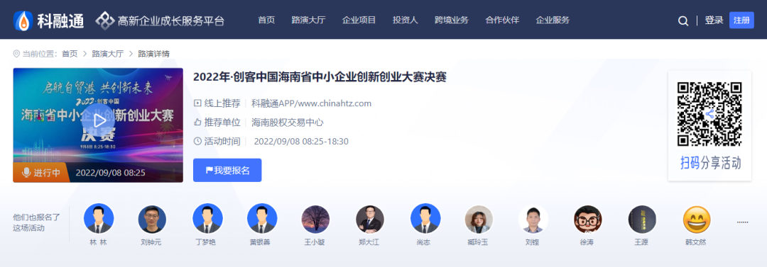 根據(jù)海南疫情防控需要,為降低傳播風(fēng)險(xiǎn),切實(shí)將各項(xiàng)防控措施落實(shí)到位,海南賽區(qū)決賽首次采取“線上路演+遠(yuǎn)程評(píng)審”的模式進(jìn)行,路演企業(yè)及評(píng)委登錄騰訊會(huì)議室,全程線上路演及答辯。值得一提的是,決賽路演同步登錄深交所科融通平臺(tái),直面全國(guó)7300多家主流的創(chuàng)投機(jī)構(gòu)和2500多家上市公司。
