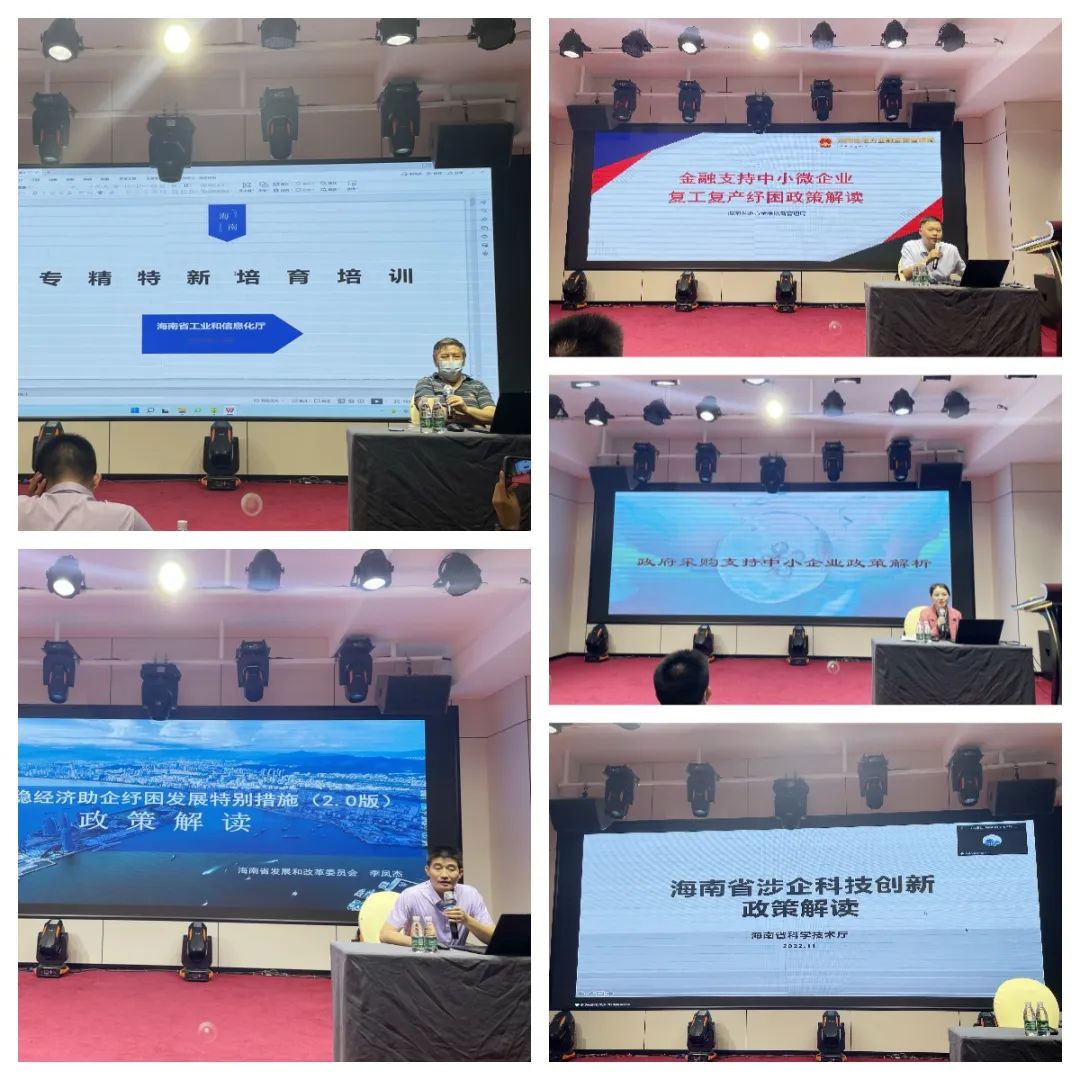 政策宣貫采取“線上+線下”的形式進(jìn)行。會上,省財政廳、省發(fā)改委、省金融監(jiān)管局、省科技廳、省工信廳等政府部門代表分別就政府采購支持中小企業(yè)政策、海南省穩(wěn)經(jīng)濟(jì)助企紓困發(fā)展特別措施(2.0版)、金融支持中小微企業(yè)復(fù)工復(fù)產(chǎn)、海南省涉企科技創(chuàng)新政策以及保障中小企業(yè)款項支付條例、中小企業(yè)紓困幫扶力度的若干措施及工信財政措施實(shí)施細(xì)則等惠企紓困政策進(jìn)行解讀。其中創(chuàng)新型中小企業(yè)、專精特新中小企業(yè)和專精特新“小巨人”企業(yè)的申報條件、促進(jìn)經(jīng)濟(jì)高質(zhì)量發(fā)展(工信領(lǐng)域)財政支持措施、貸款貼息、應(yīng)收貸款融資等宣貫內(nèi)容,吸引了在場多家企業(yè)的關(guān)注。省工信廳向參會企業(yè)發(fā)放《減輕企業(yè)負(fù)擔(dān)政策匯編(2022)》手冊,幫助企業(yè)更好地了解政策、把握政策、享受政策。