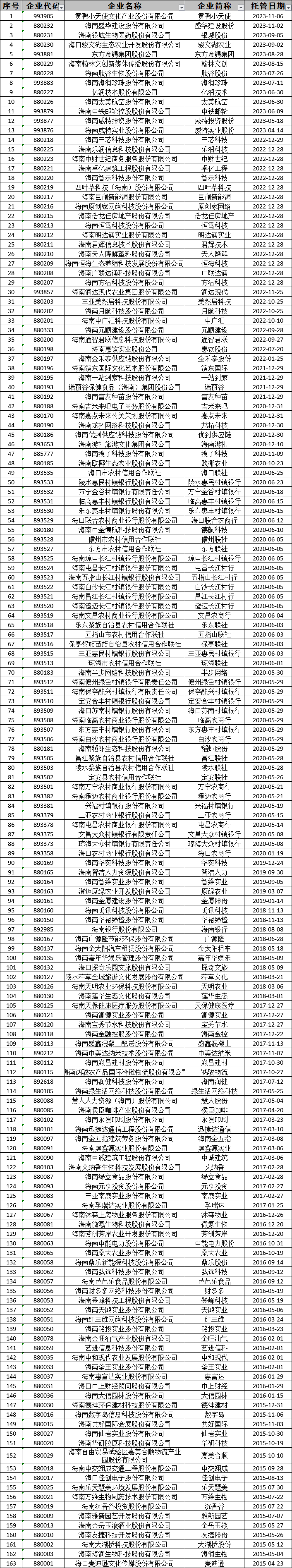 海南股權交易中心有限責任公司 股權登記托管企業(yè)名單公示公告