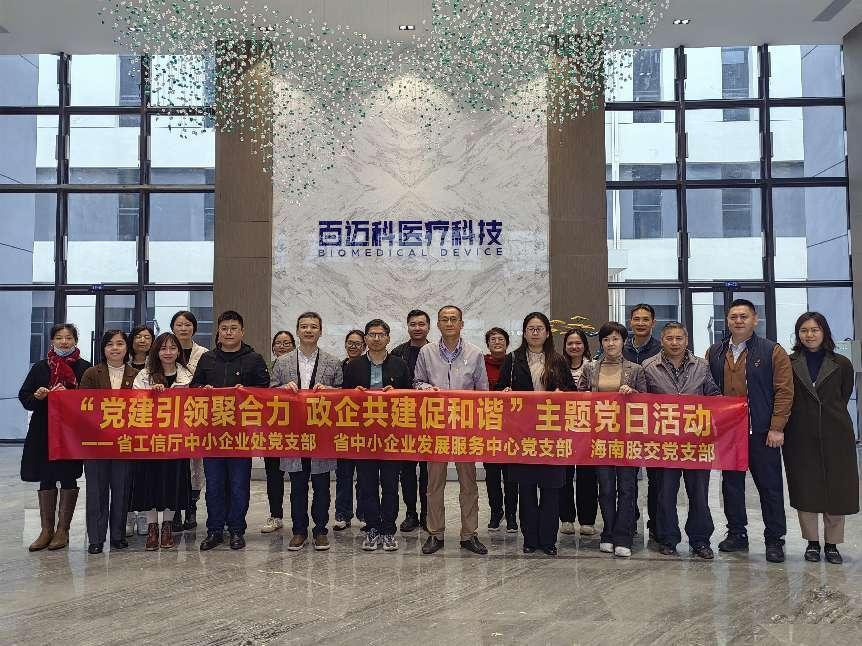12月21日下午,省工信廳中小企業(yè)處黨支部、省中小企業(yè)發(fā)展服務中心黨支部、海南股交黨支部赴定安縣海南百邁科生物醫(yī)療科技股份有限公司開展“黨建引領聚合力、政企共建促和諧”主題黨日活動。