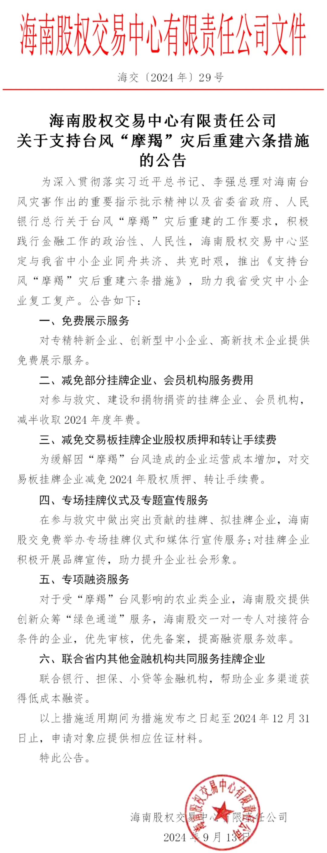 海南股權(quán)交易中心將深入了解受災(zāi)中小企業(yè)影響情況以及各方面的需求,充分發(fā)揮綜合金融服務(wù)平臺(tái)作用,幫助企業(yè)對(duì)接省內(nèi)其他金融機(jī)構(gòu),全力解決企業(yè)資金周轉(zhuǎn)難題,為堅(jiān)決打贏災(zāi)后重建攻堅(jiān)戰(zhàn),助力我省中小企業(yè)恢復(fù)生產(chǎn)經(jīng)營(yíng)貢獻(xiàn)力量。