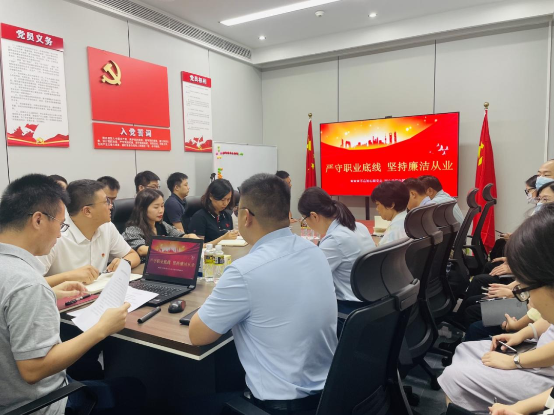 為進一步推動黨紀學習教育走深走實,筑牢拒腐防變的思想防線,增強黨員干部職工的廉潔從業(yè)意識,7月31日,海南股交黨支部邀請海南金控紀檢委員段建銳為全體員工講授“嚴守職業(yè)底線 堅持廉潔從業(yè)”專題黨課,會議由海南股交黨支部書記、董事長朱磊主持。