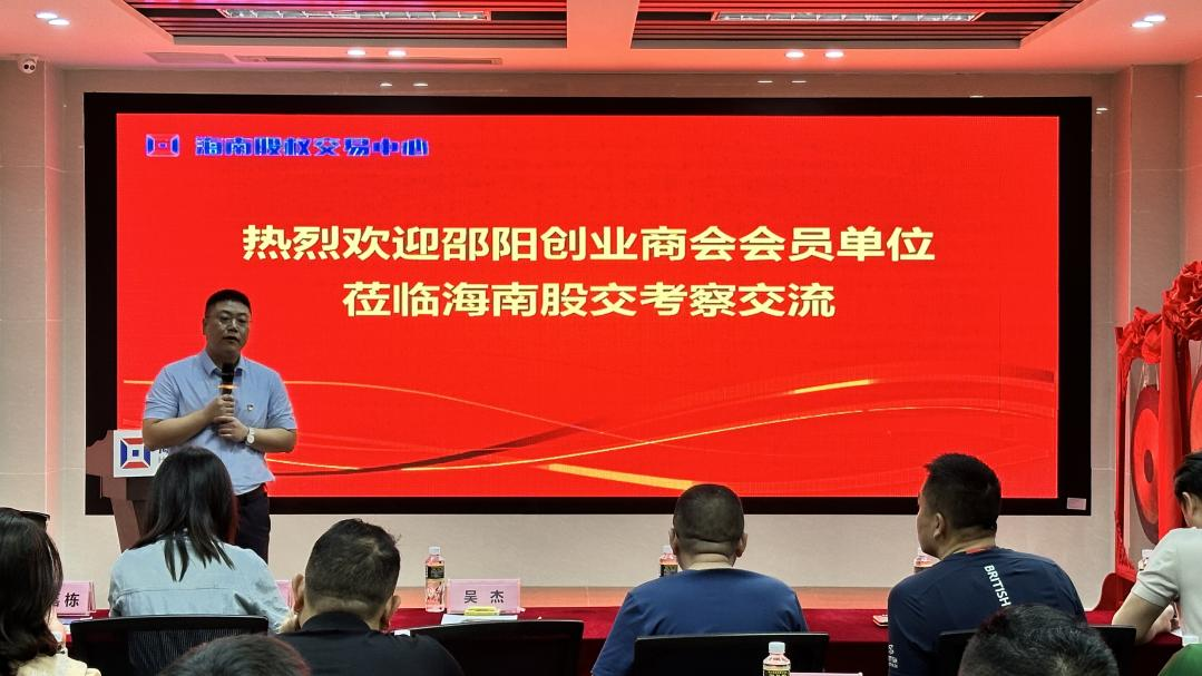 海南股交總經(jīng)理吳杰對湖南邵陽市創(chuàng)業(yè)商會領(lǐng)導(dǎo)及會員單位代表的到來表示熱烈歡迎,他表示,本次活動為雙方后續(xù)開展業(yè)務(wù)合作開創(chuàng)了良好局面,期待雙方以此次活動為契機,建立起更加緊密的互動與合作。他歡迎邵陽市創(chuàng)業(yè)商會會員單位到自貿(mào)港投資興業(yè),海南股交將全力為企業(yè)提供培育孵化、融資對接等一攬子服務(wù),助力企業(yè)高質(zhì)量發(fā)展。