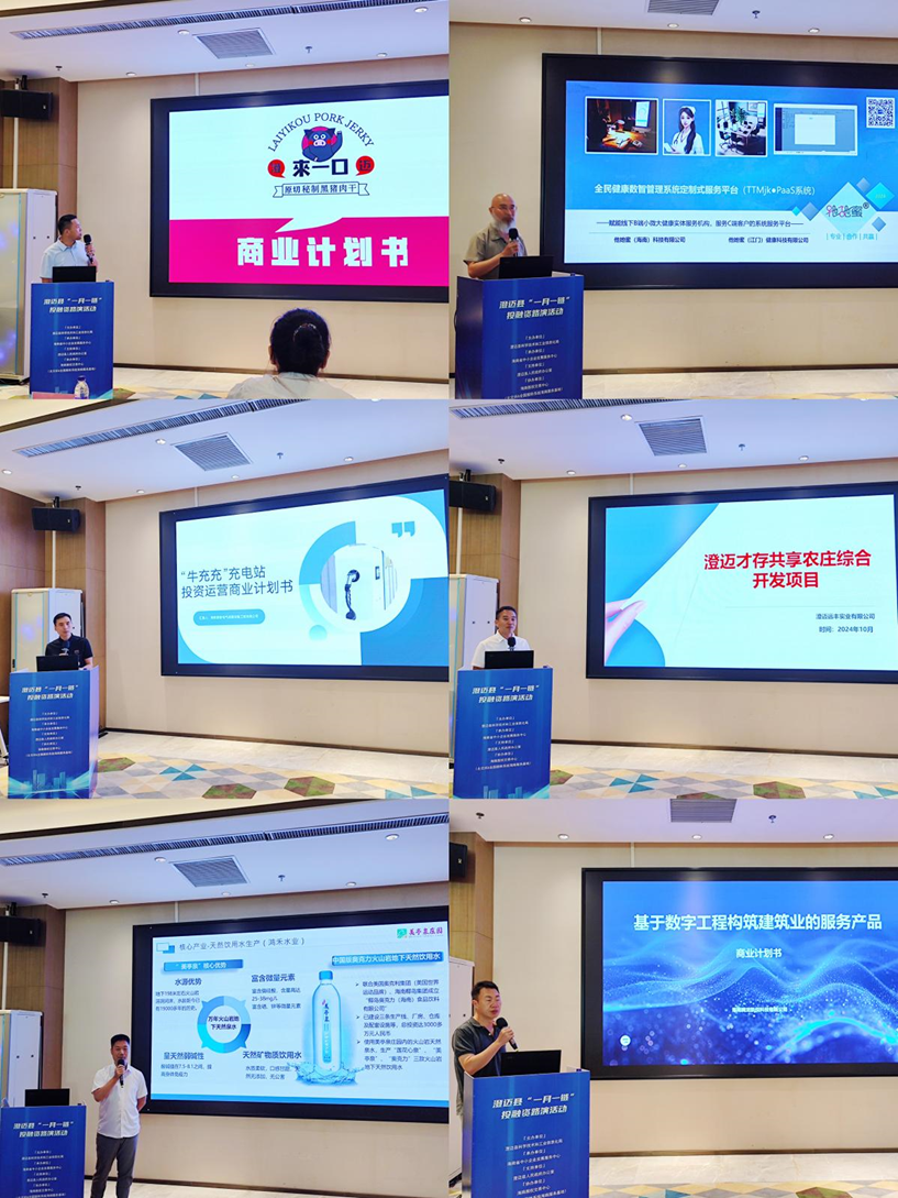 投融資路演環(huán)節(jié),海南澄邁來一口生態(tài)農(nóng)業(yè)發(fā)展有限公司、他她蜜(海南)科技有限公司、海南騰龍凱悅科技有限公司、澄邁遠豐實業(yè)有限公司、海南泰新電氣成套設(shè)備工程有限公司、海南天鴻實業(yè)股份有限公司等六家優(yōu)質(zhì)企業(yè)分別進行了精彩的現(xiàn)場路演,各項目代表依次圍繞企業(yè)背景、項目方向、研究成果、應(yīng)用前景及融資規(guī)劃等內(nèi)容對企業(yè)的創(chuàng)新成果和發(fā)展?jié)摿M行了展示。