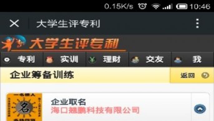 | 企業(yè)說明: | 海口翹鵬科技有限公司專注于大學(xué)生評專利創(chuàng)新創(chuàng)業(yè)訓(xùn)練平臺的研發(fā)和推廣,所屬領(lǐng)域:互聯(lián)網(wǎng)+大學(xué)生+專利點(diǎn)評+創(chuàng)新創(chuàng)業(yè)訓(xùn)練+金融,大學(xué)生評專利目的是為了解決我國專利推廣難和大學(xué)生創(chuàng)業(yè)就業(yè)難兩大痛點(diǎn),它用發(fā)明專利來給大學(xué)生進(jìn)行創(chuàng)新創(chuàng)業(yè)訓(xùn)練,用大學(xué)生評專利的形式間接幫助發(fā)明人宣傳和推廣專利,幫助投資人篩選優(yōu)質(zhì)的專利投資項(xiàng)目,平臺提供了一種跨界的服務(wù),處在互聯(lián)網(wǎng)、教育、科技、創(chuàng)業(yè)、專利、融資的交匯點(diǎn)上,它讓大學(xué)生成為主角,成為溝通企業(yè)、發(fā)明人和投資人的橋梁,普通的大學(xué)生可以旁觀其他人創(chuàng)新、創(chuàng)業(yè),在參與和體驗(yàn)真實(shí)的創(chuàng)新,創(chuàng)業(yè)過程中,獲得與專業(yè)相關(guān)的實(shí)踐經(jīng)驗(yàn),學(xué)習(xí)到發(fā)明專利和創(chuàng)新創(chuàng)業(yè)基本知識,為日后走上創(chuàng)業(yè)之路奠定基礎(chǔ)。 大學(xué)生評專利平臺開創(chuàng)了一個全新的商業(yè)模式,通過獨(dú)特的形式盤活專利市場,能夠提升大學(xué)生就業(yè)能力和創(chuàng)新創(chuàng)業(yè)能力,它順應(yīng)了“大眾創(chuàng)業(yè),萬眾創(chuàng)新”的潮流,是國家政策所鼓勵的,如果這種模式得以在全國推廣,它就會成為解決我國專利推廣難和大學(xué)生創(chuàng)業(yè)就業(yè)難等問題的最佳方案,進(jìn)而整合多方資源,推動“中國制造”向“中國創(chuàng)造”蛻變,帶來巨大的經(jīng)濟(jì)效益和社會效益。 公司宗旨:為發(fā)明人圓夢,為大學(xué)生創(chuàng)業(yè)圓夢!讓中國的專利不再難推廣!